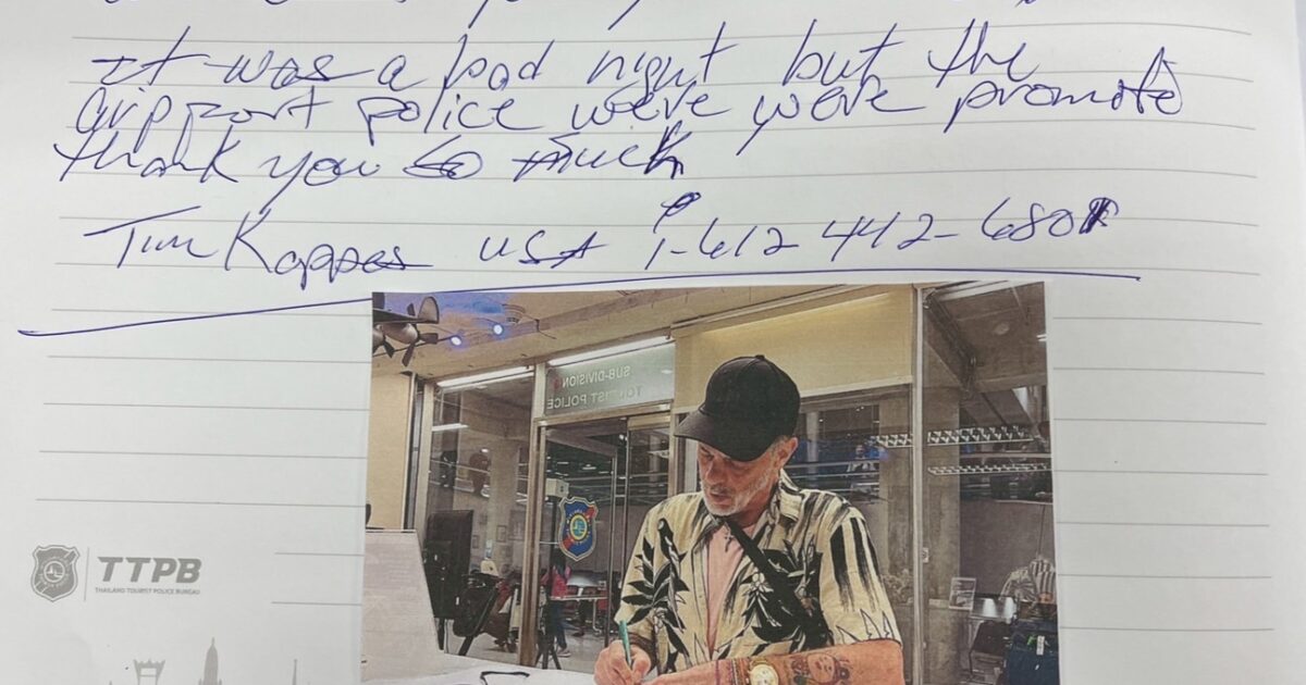วันนี้ 28 เม.ย.68 เวลาประมาณ 20.55 น. ได้มี Mr.Timothy Samuel Kappes สัญชาติอเมริกัน เข้ามาติดต่อที่ กองกำกับการ 3 กองบังคับการตำรวจท่องเที่ยว 1 ท่าอากาศยานสุวรรณภูมิ โดย แจ้งว่าตนลืมกระเป๋าสะพายข้าง (สีดำ) ข้างในมีหนังสือเดินทาง และเอกสารต่างๆ ไว้บนรถบริการ