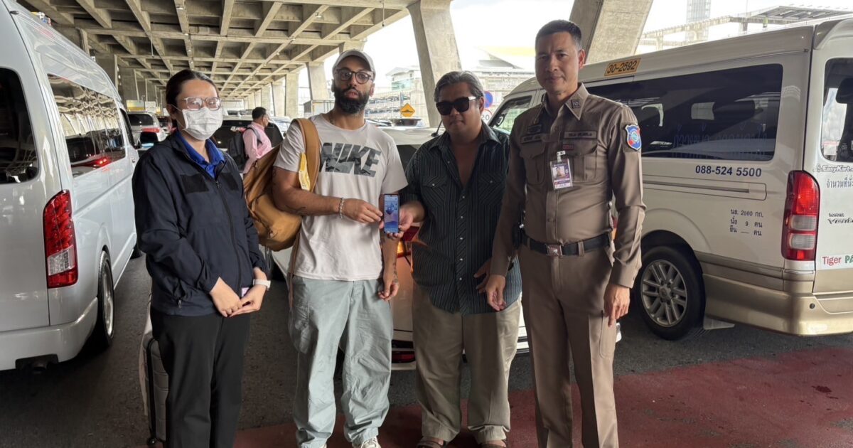 ตำรวจท่องเที่ยวท่าอากาศยานสุวรรณภูมิช่วยเหลือนักท่องเที่ยวชาวฝรั่งเศษ ลืมมือถือบนรถโดยสาร