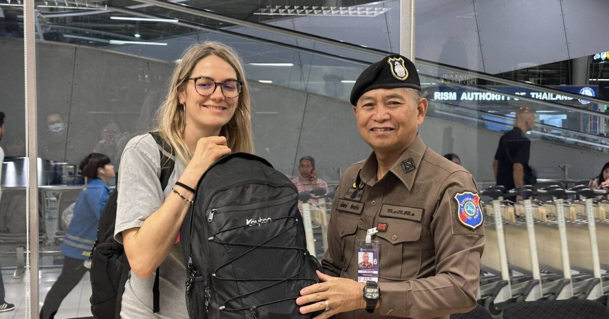 ตำรวจท่องเที่ยวท่าอากาศยานสุววรณภูมิช่วยเหลือนักท่องเที่ยวชาวฝรั่งเศส ลืมกระเป๋าบนรถโดยสาร