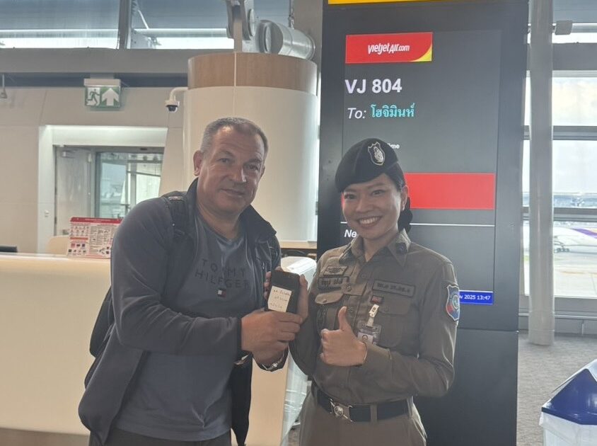 ตำรวจท่องเที่ยวท่าอากาศยานสุววรณภูมิช่วยเหลือนักท่องเที่ยวชาวอังกฤษ ลืมมือถือบนรถโดยสาร