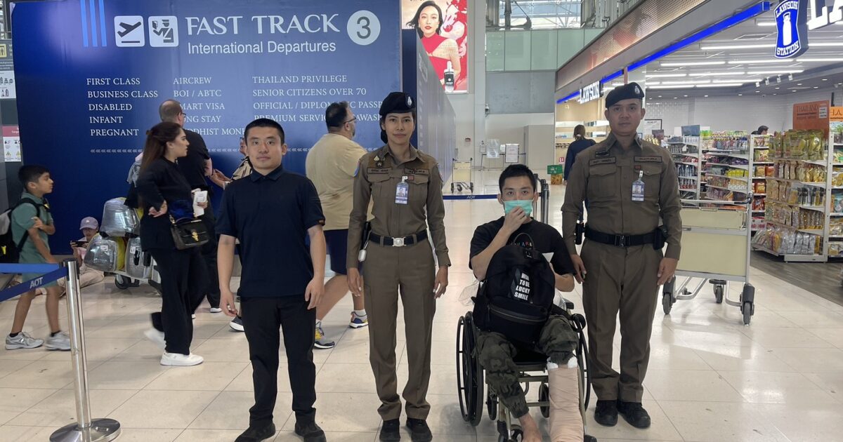 ตำรวจท่องเที่ยวไทยท่าอากาศยานสุวรรณภูมิช่วยเหลือนักท่องเที่ยวชาวจีนบาดเจ็บที่ขาเดินทางกลับบ้าน