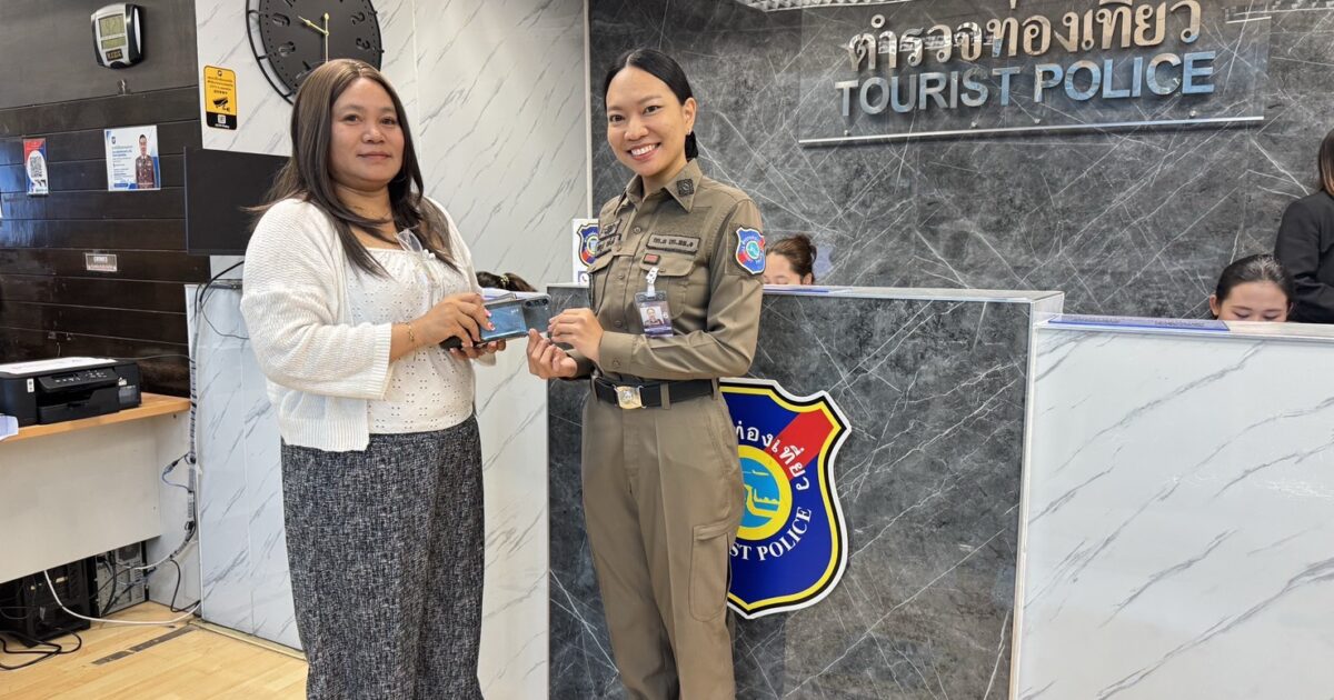 ตำรวจท่องเที่ยวไทยท่าอากาศยานสุวรรณภูมิช่วยเหลือนักท่องเที่ยวชาวเกาหลีใต้ ลืมมือถือ